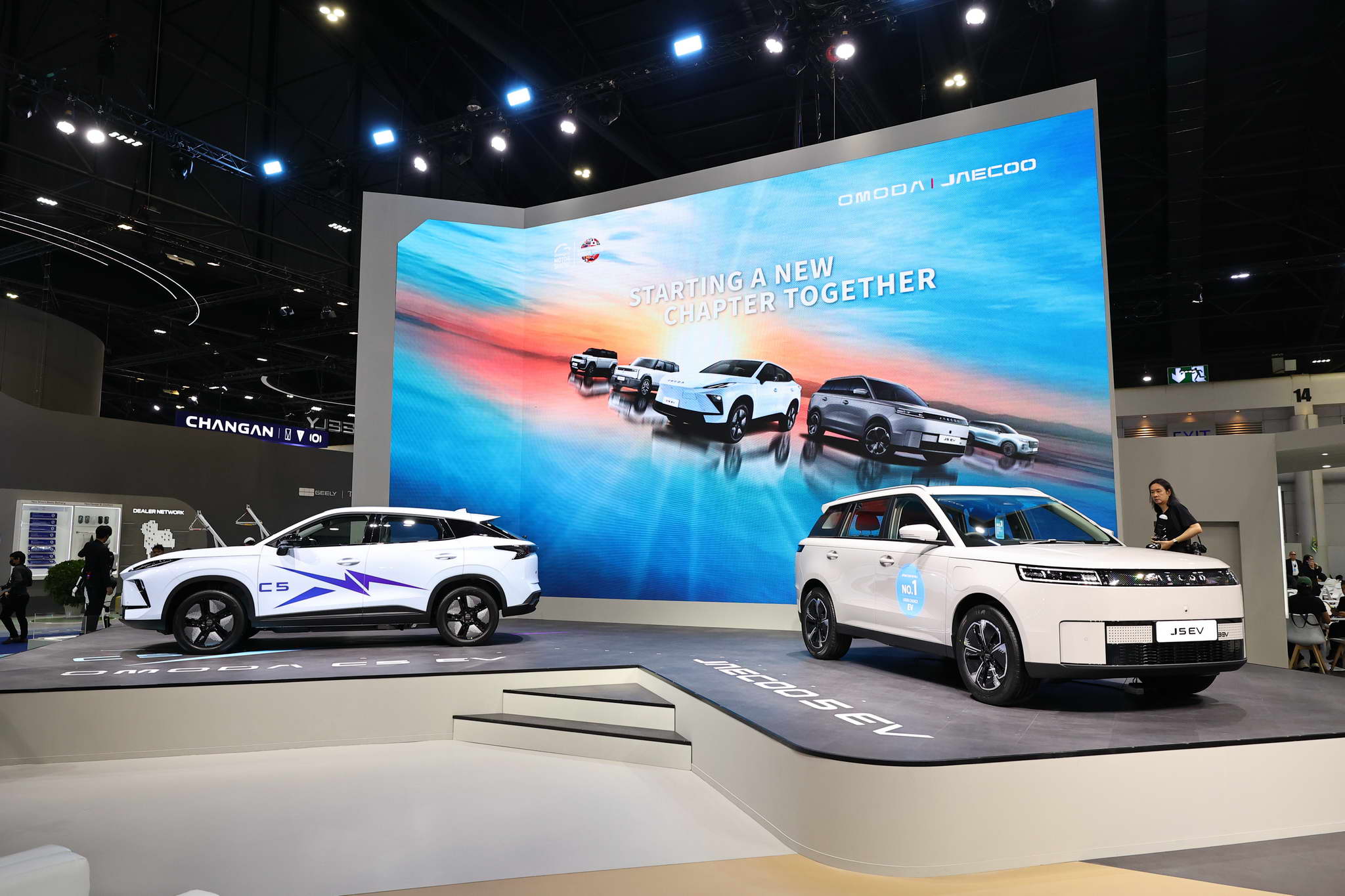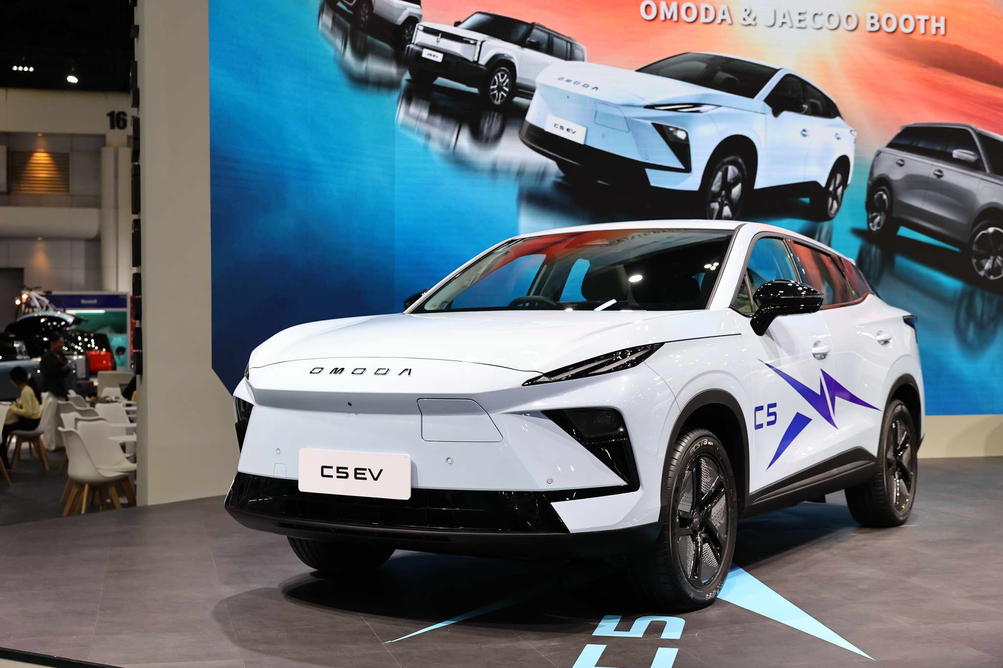 Az OMODA és a JAECOO standján kiállított járművek között megtalálható az OMODA C5 EV MAX+, a JAECOO 5 EV MAX+, a JAECOO 6 EV, a JAECOO 6T EV és a JAECOO 7 SHS.