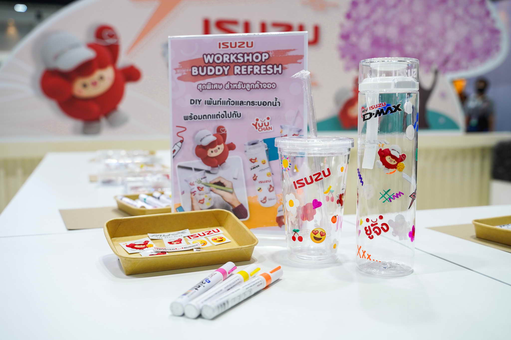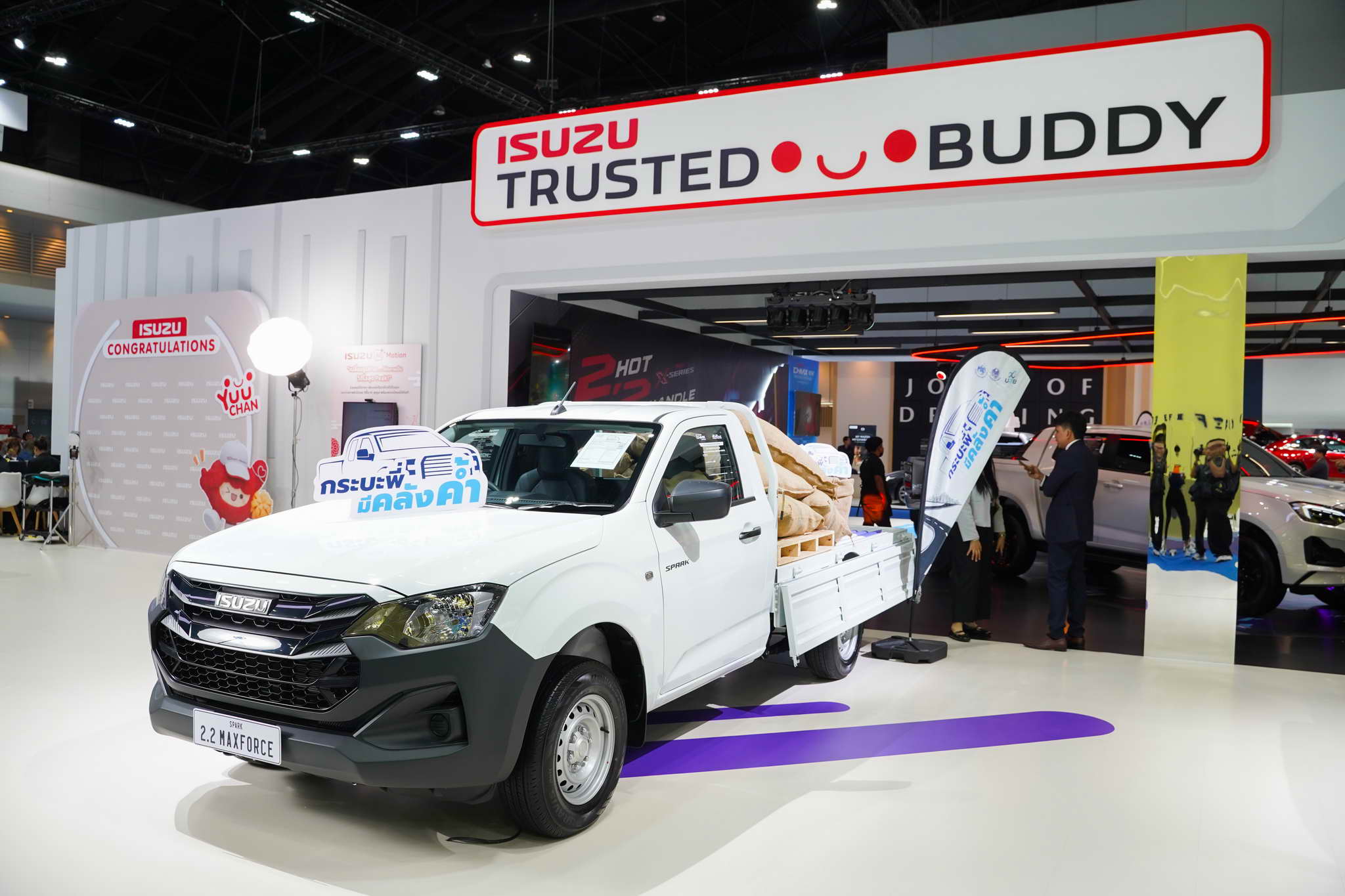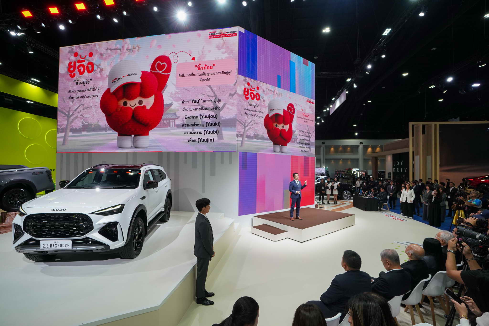 A stand központjában „Yuu-chan”, az Isuzu legújabb kabalája áll, aki egy hatalmas LED-falon, 3D-s látványvilággal kelti életre az „Isuzu Trusted Buddy” (Isuzu, a megbízható társ) üzenetet.