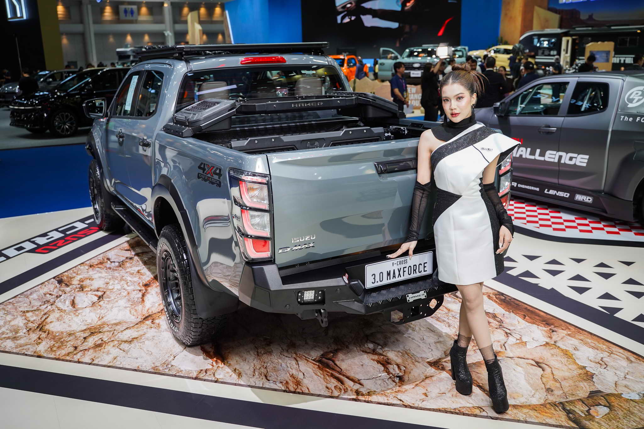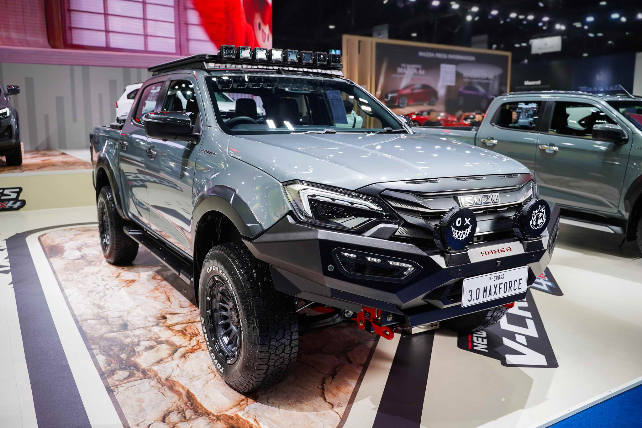 5. ISUZU V-CROSS HAMER: Hardcore off-road kivitel HAMER kiegészítőkkel (vadrács, tetőcsomagtartó, expedíciós doboz) és Black Rhino felnikkel.