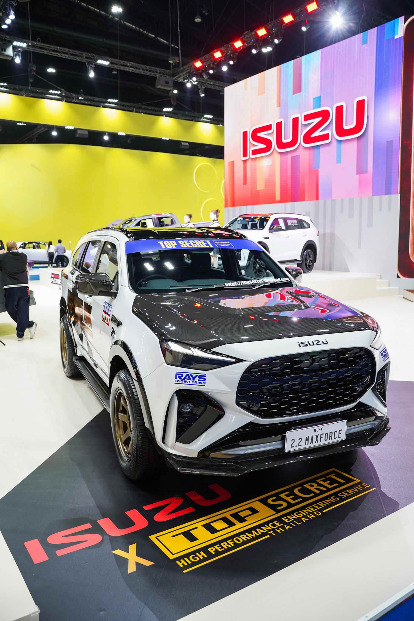 3. MU-X Top Secret SPL: A világ első „Top Secret PPV” projektje. Teljes karbon karosszéria-kit (Monza Gold), Profender futómű, HKS kipufogó és 230 LE feletti teljesítmény.